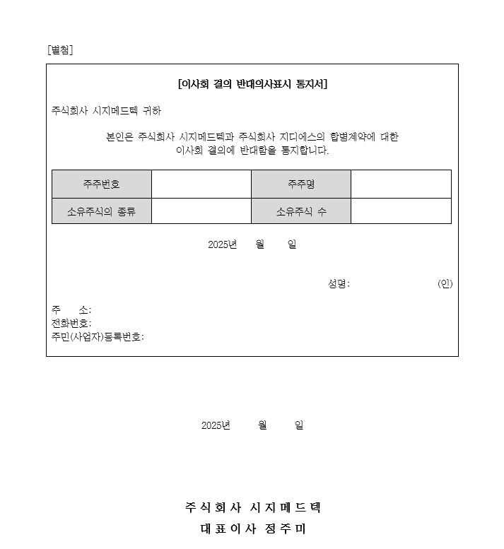 [공고] 소규모 합병 반대 통지 접수 안내