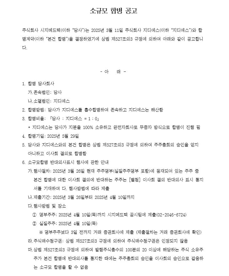[공고] 소규모 합병