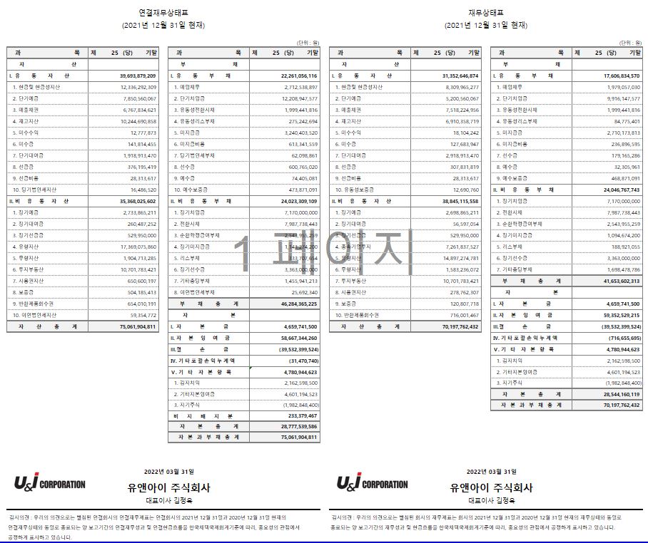 [2021년] 제25기 사업보고서 및 감사보고서 공지